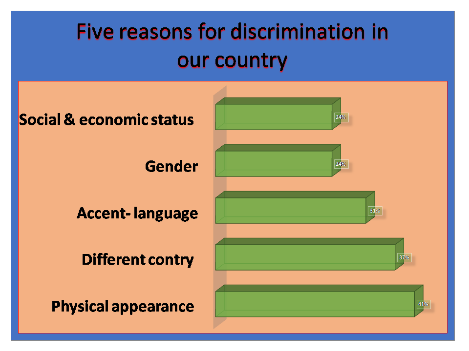 Evaluation of questionnaire about the reasons of discrimination.