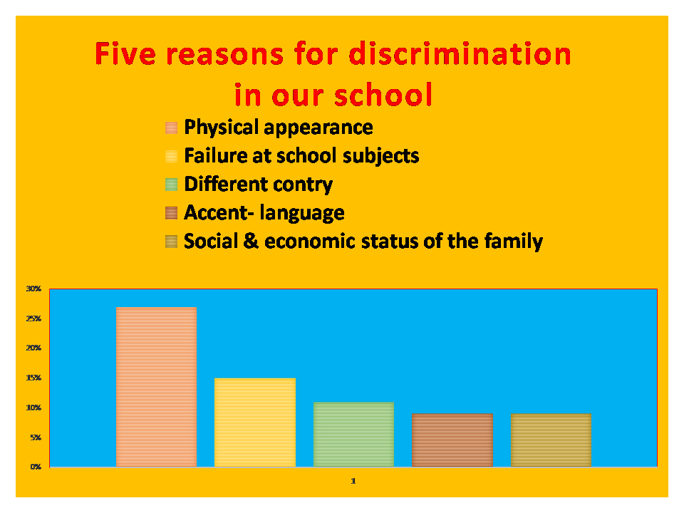 We have found five reasons for discrimination in our country, five reasons for discrimination in our school and determined the persentage of students who feel the generation gap in their families,